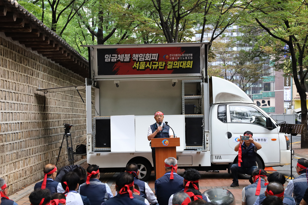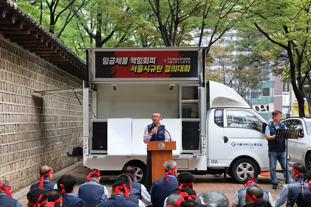 노조는 2025년 9월25일 시청 앞에서 '임금체불 책임회피 서울시규탄 결의대회'를 개최했다.